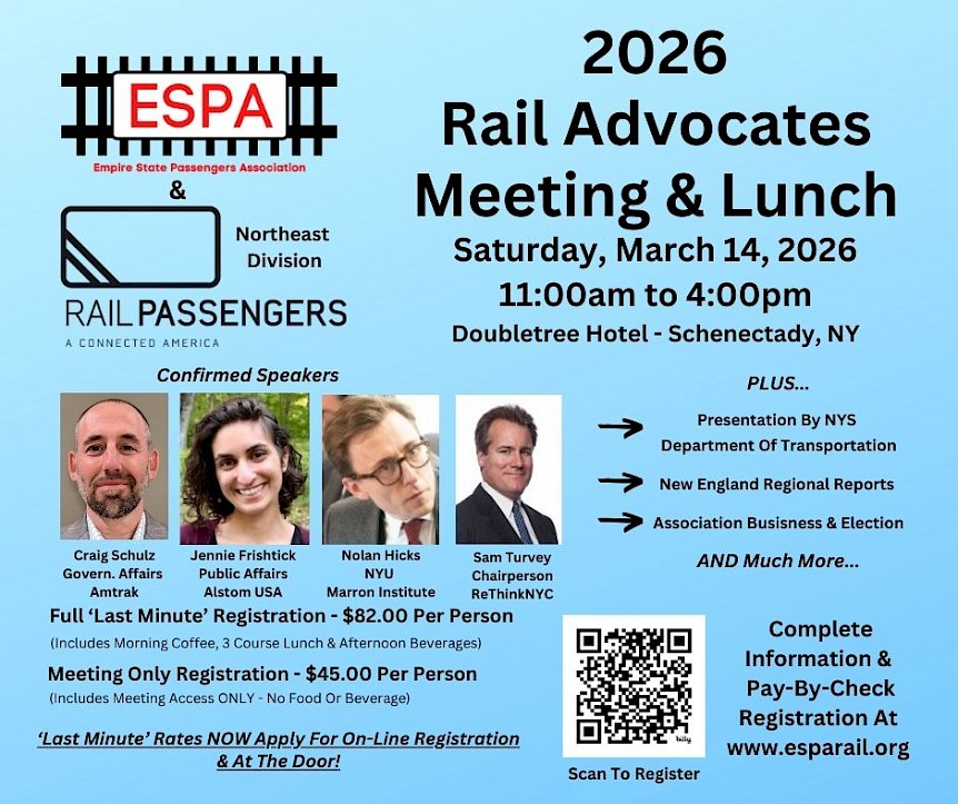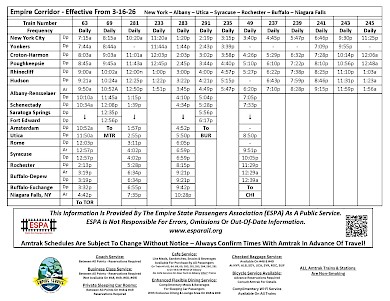 The Empire State Passengers Association (ESPA) is a volunteer network of citizens, founded in 1980, constantly working to improve and expand Amtrak and public transit services across New York State, from Montauk to Niagara Falls and Dunkirk to Plattsburgh.
