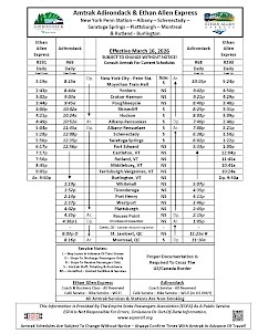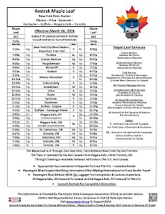 Empire Corridor Schedule - Maple Leaf Schedule - Adirondack & Ethan Allen Express Schedule - Lake Shore Limited Schedule