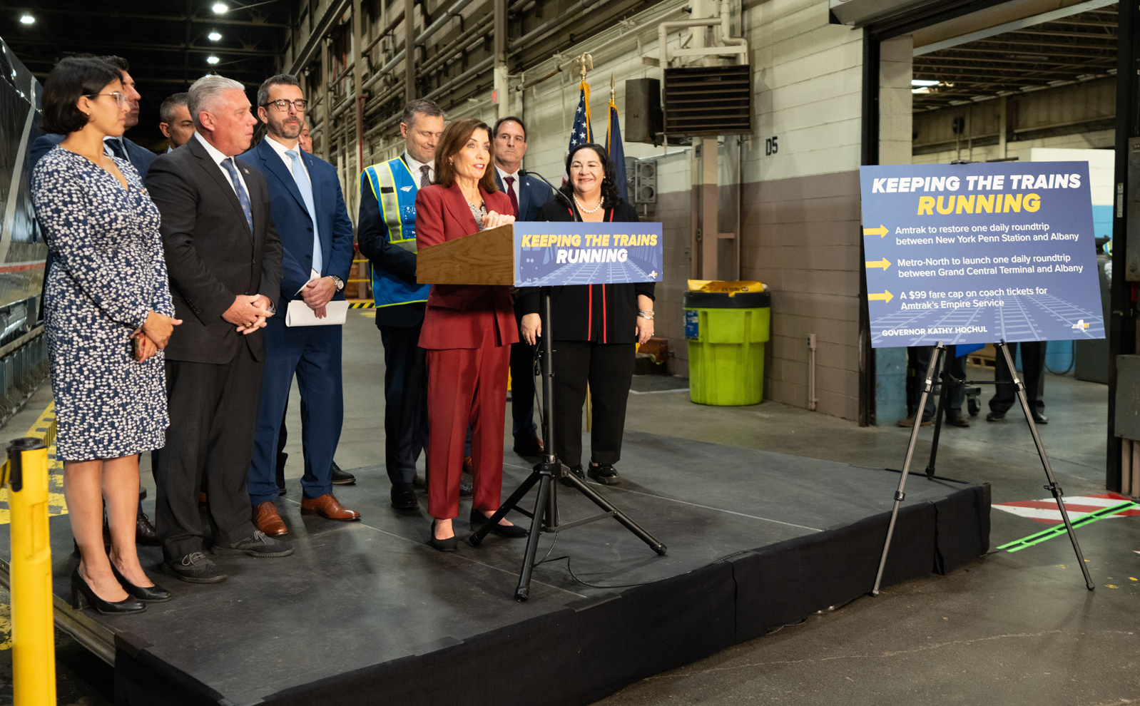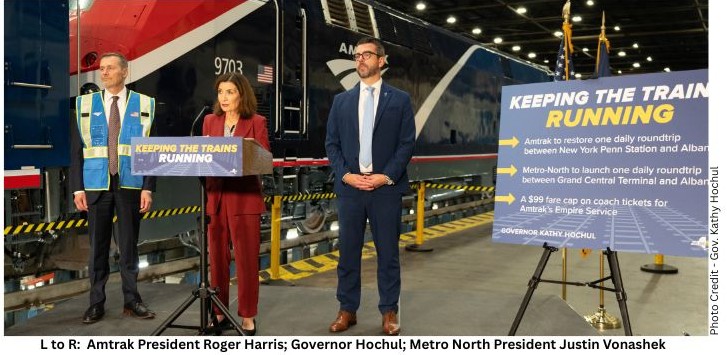 At a press event held on Monday, October 20, at Amtrak’s Rensselaer Maintenance Facility, Governor Kathy Hochol announced several passenger-friendly improvement initiatives. The Governor was joined at the event by Amtrak President Roger Harris and Metro North President Justin Vonashek.